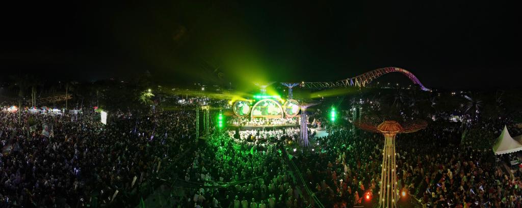 Puluhan ribu umat muslim memadati kawasan Taman Kota Raja, Tenggarong pada Sabtu (28/10/2023) malam. Kedatangan mereka untuk melantunkan shalawat secara bersamaan dipandu Habib Syech bin Abdul Qodir Assegaf.