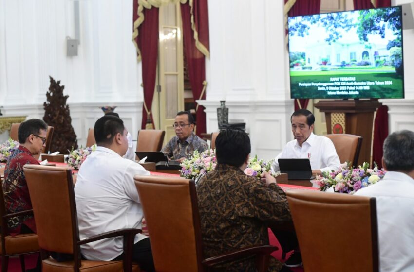 JAKARTA-Presiden Joko Widodo memimpin rapat terbatas (ratas) bersama jajarannya untuk membahas persiapan Pekan Olahraga Nasional (PON) XXI di Provinsi Aceh dan Sumatra Utara (Sumut) yang akan dimulai pada September 2024 mendatang. Ratas tersebut digelar di Istana Merdeka, Jakarta, pada Senin, 9 Oktober 2023.